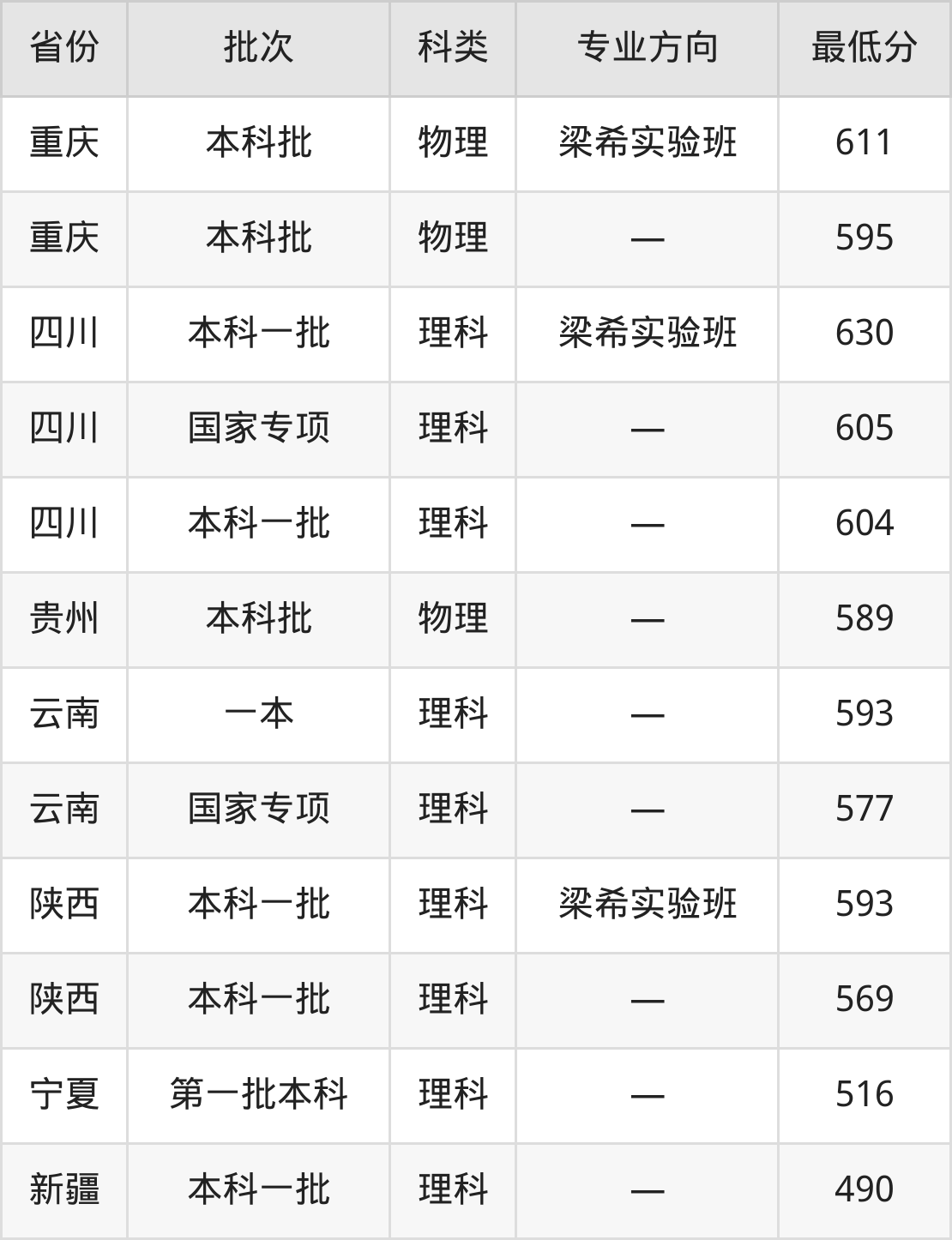 北京林业大学林学类专业录取分数线从490分到640分不等,在部分地区的最低分数线如下:
