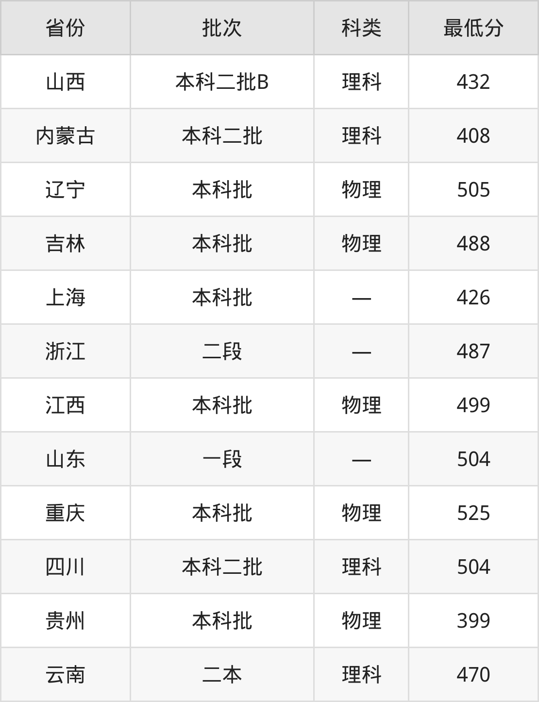 齐齐哈尔医学院生物医学工程专业录取分数线从399分到525分不等,在部分地区的最低分数线如下: