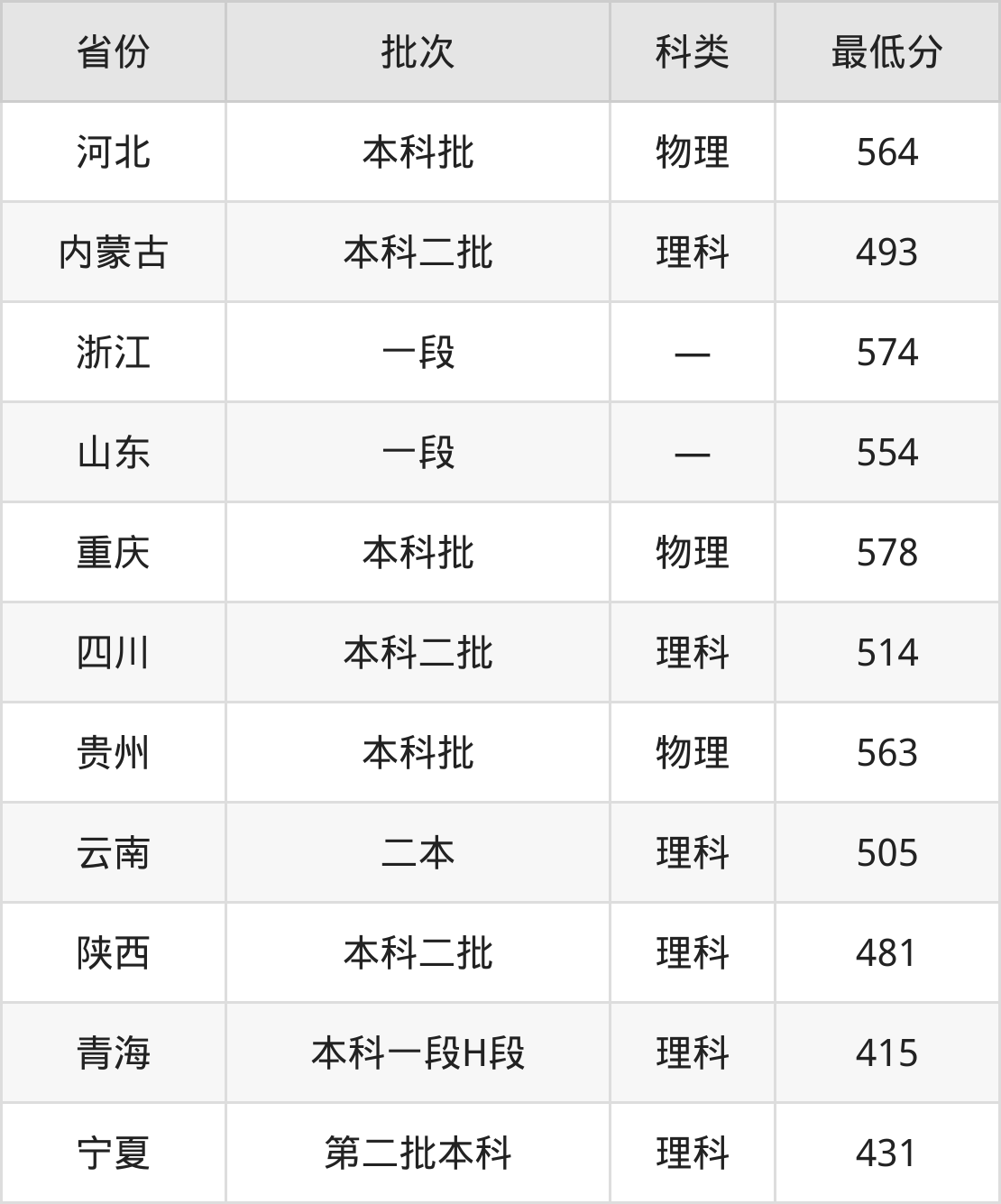 甘肃中医药大学临床医学专业在全国各省最低录取分数线为415分(青海理科),除此之外,在其余地区的最低分为山东554分、四川理科514分、云南理科505分、陕西理科481分等,以上数据均为2024年数据,供2025年高考生参考。
