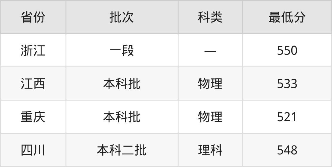 重庆科技大学数学与应用数学专业录取分数线从521分到550分不等,最低分数线如下: