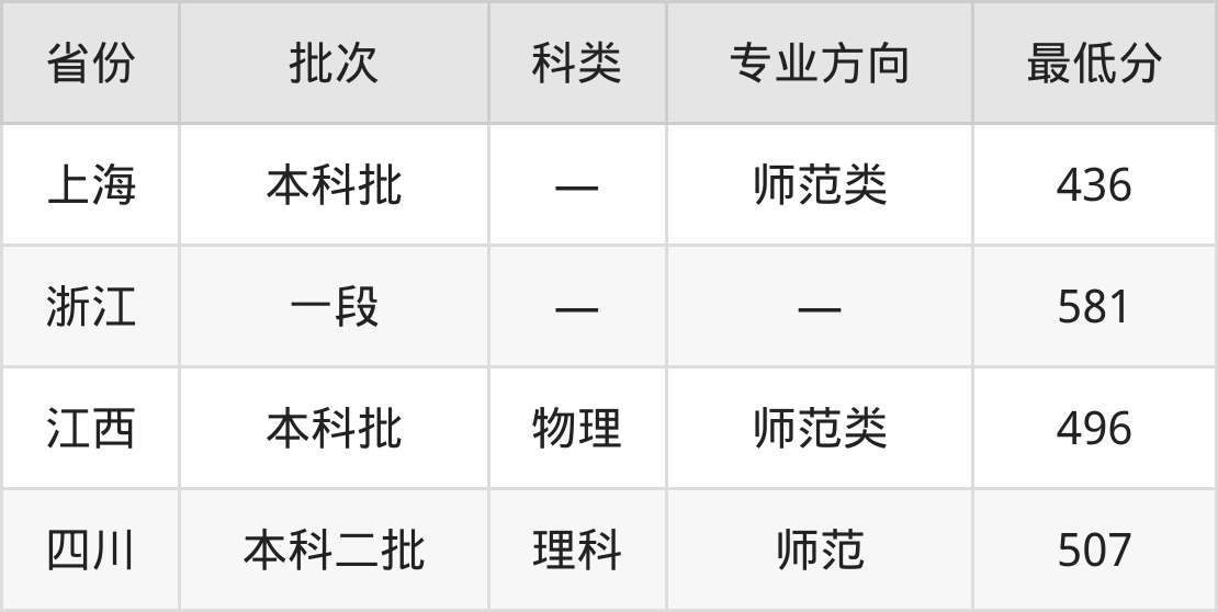 淮南师范学院应用心理学专业在全国各省最低录取分数线为436分(上海),除此之外,在其余地区的最低分为浙江581分、江西物理类496分、四川理科507分,以上数据均为2024年数据,供2025年高考生参考。