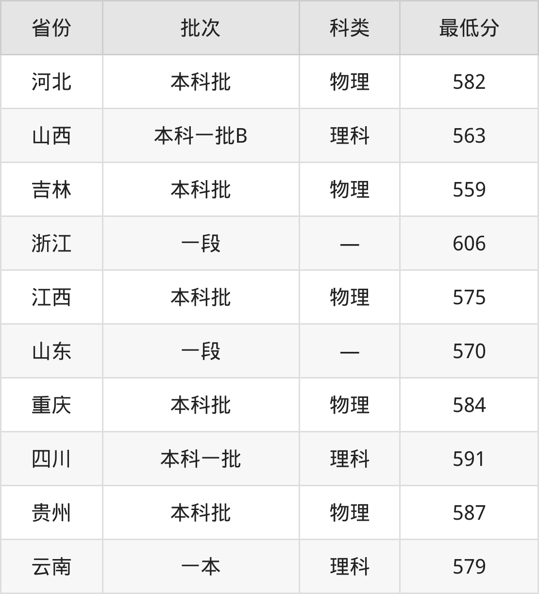云南:理科最低579分