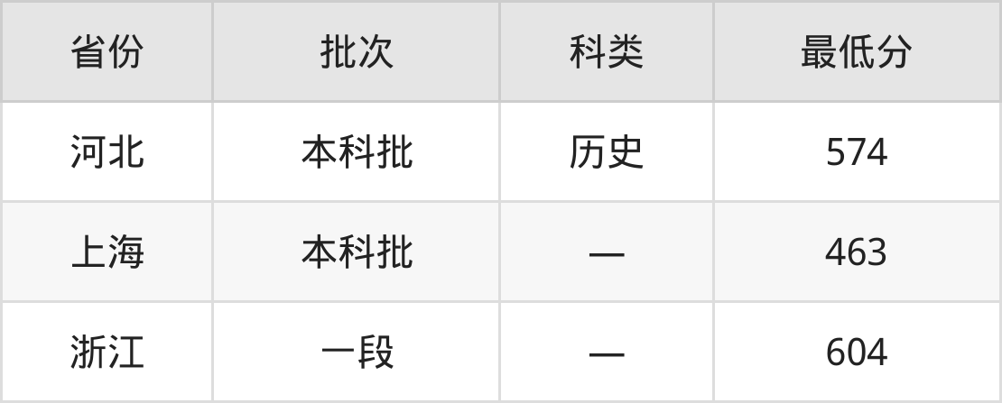 上海第二工业大学汉语国际教育专业在全国各省录取分数线: