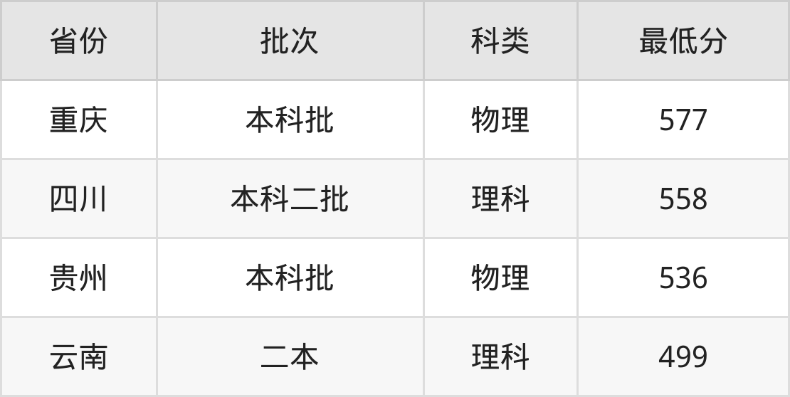 右江民族医学院口腔医学专业在全国各省最低录取分数线为499分(云南理科),除此之外,在其余地区的最低分为重庆物理类577分、四川理科558分、贵州物理类536分,以上数据均为2024年数据,供2025年高考生参考。