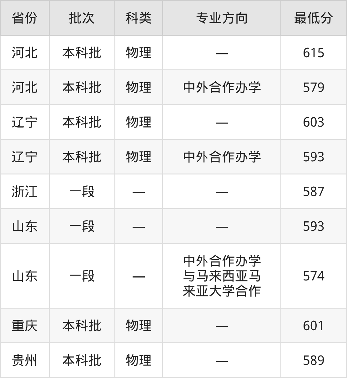 | 物理类 | 21专业组( 合作办学和高 收费专业) | 中外合作合作 办学和高收费 专业 | 21 |