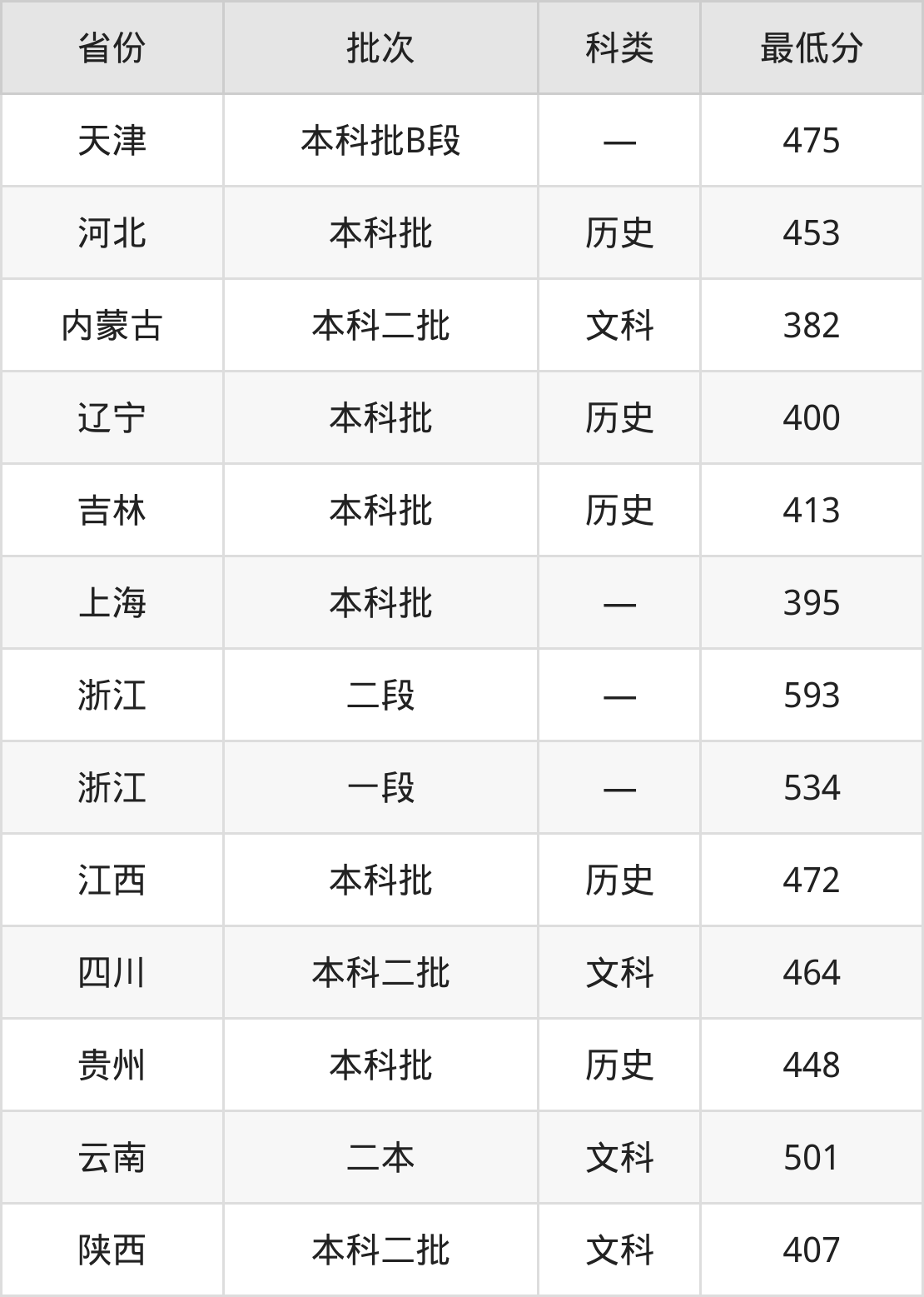 内蒙古:文科最低382分