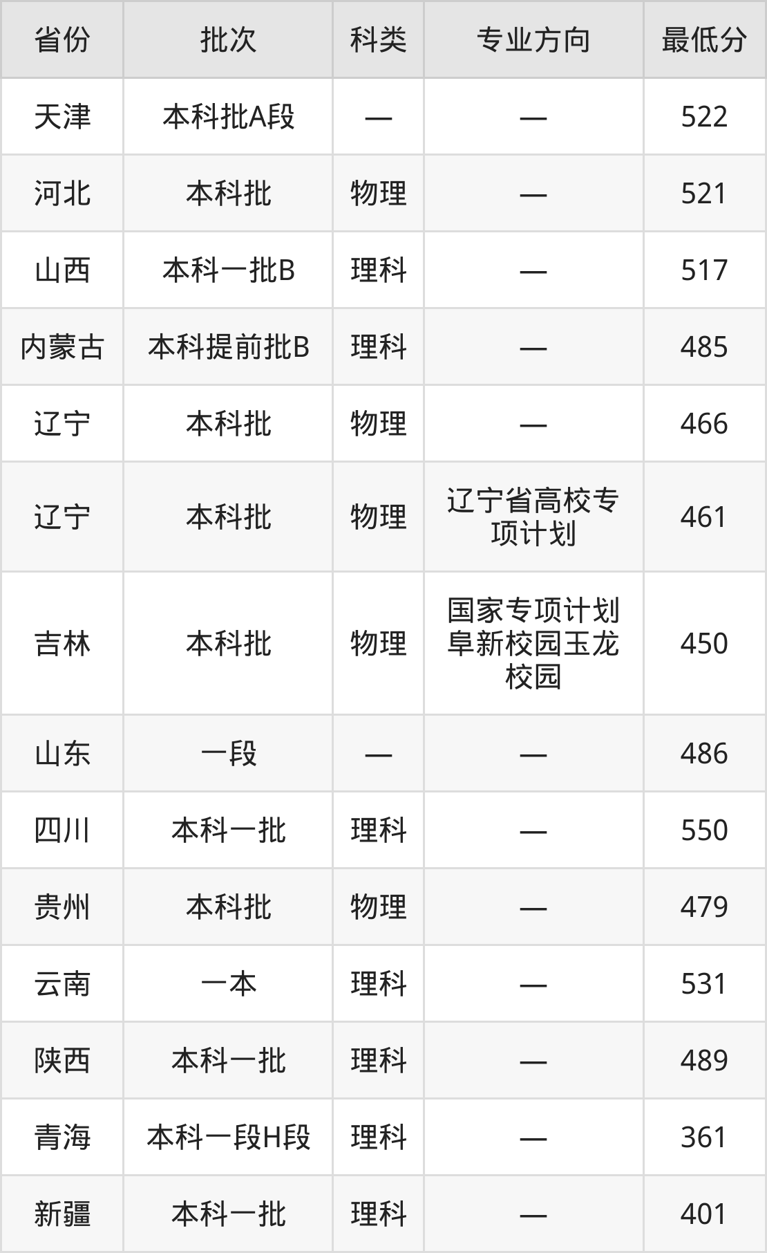 辽宁工程技术大学土木工程专业录取分数线从361分到550分不等,在部分地区的最低分数线如下: