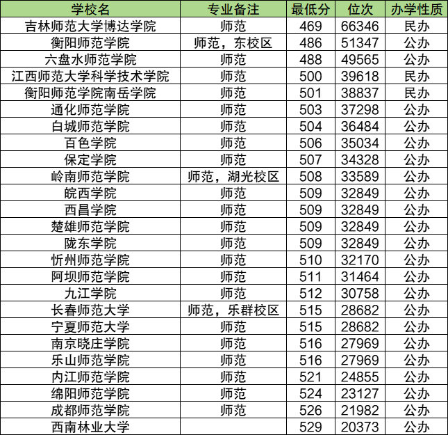 在文科二本招生的地理科学大学有25所,录取分数线最低的是吉林师范大学博达学院(民办),2024年最低分469分;录取分数线最高的是西南林业大学,2024年最低分529分。最低分公办二本地理科学大学为衡阳师范学院,2024年最低分486分。