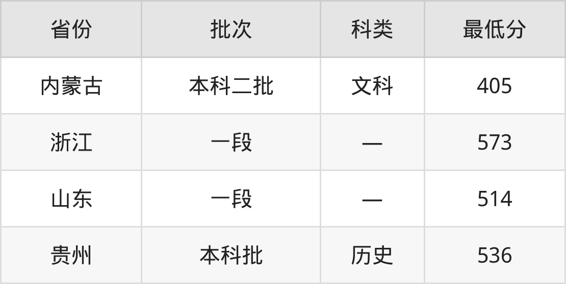 吉首大学旅游管理专业在全国各省最低录取分数线为405分(内蒙古文科),除此之外,在其余地区的最低分为浙江573分、山东514分、贵州历史类536分,以上数据均为2024年数据,供2025年高考生参考。