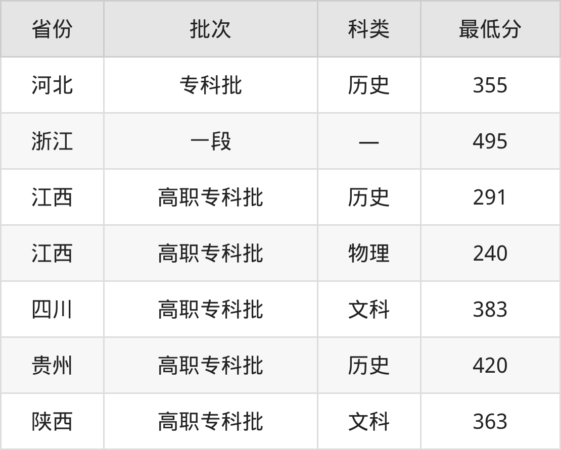 南昌工学院法律事务专业录取分数线从240分到495分不等,最低分数线如下: