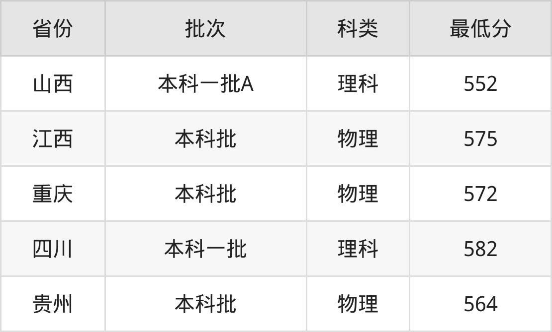 华南农业大学应用化学专业在全国各省最低录取分数线为552分(山西理科),除此之外,在其余地区的最低分为江西物理类575分、重庆物理类572分、四川理科582分、贵州物理类564分等,以上数据均为2024年数据,供2025年高考生参考。