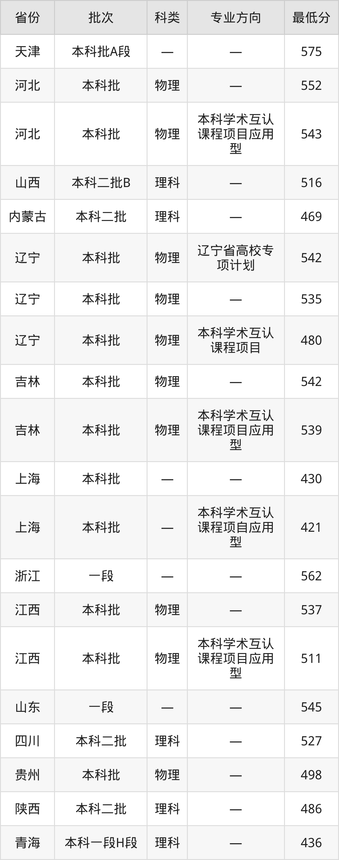 | 物理类 | 本科学术互认 课程项目 | 40 |