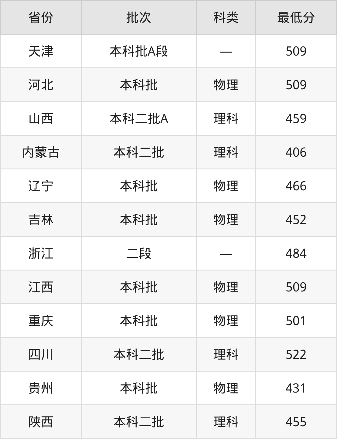 内蒙古:理科最低406分