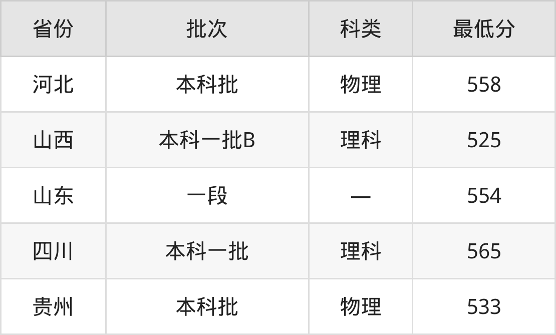 山西:理科最低525分