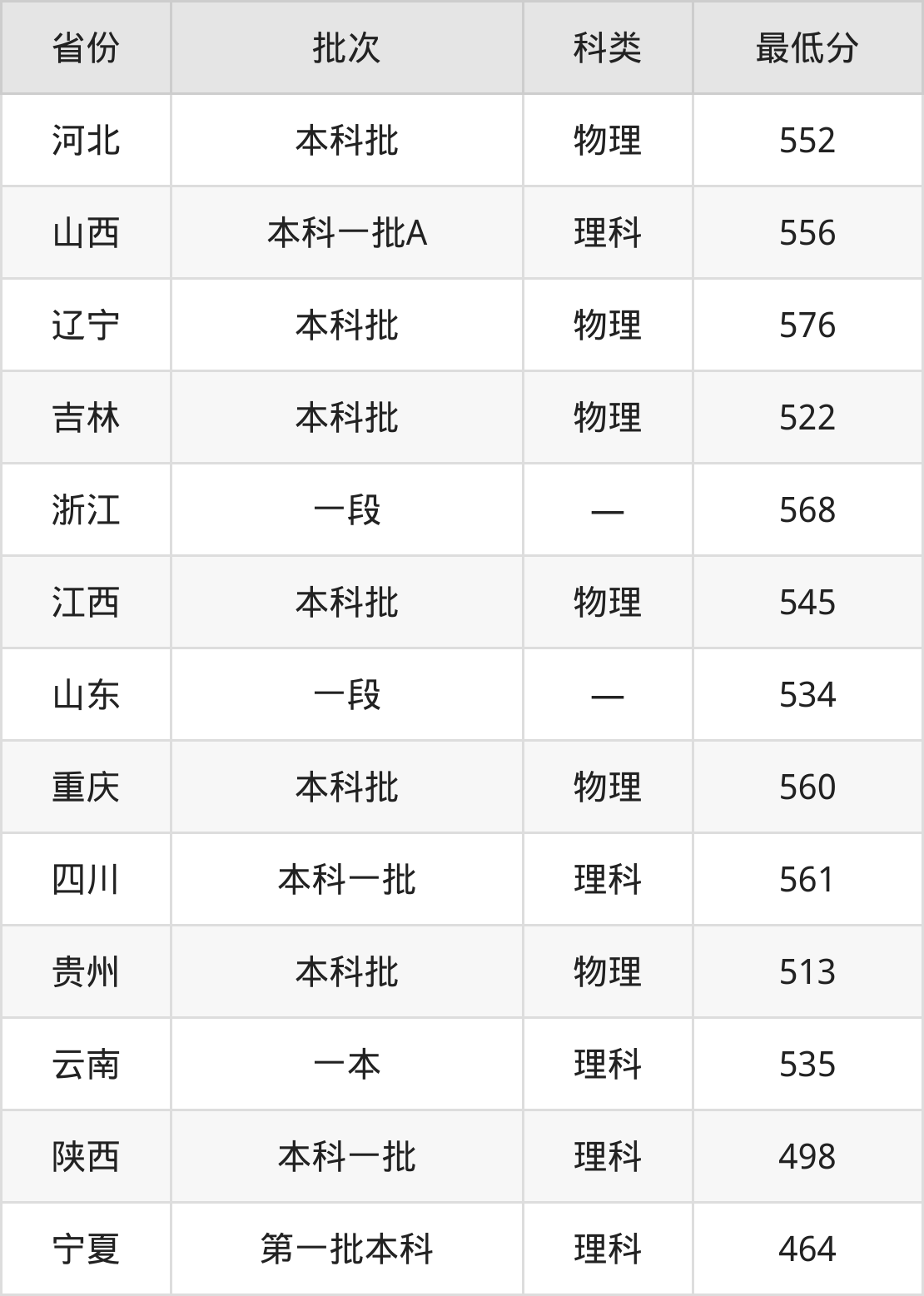 东北石油大学油气储运工程专业录取分数线从464分到576分不等,在部分地区的最低分数线如下: