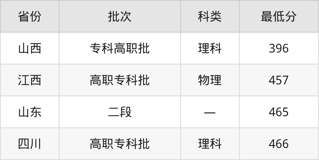 常州信息职业技术学院智能控制技术专业在全国各省最低录取分数线为396分(山西理科),除此之外,在其余地区的最低分为江西物理类457分、山东465分、四川理科466分,以上数据均为2024年数据,供2025年高考生参考。