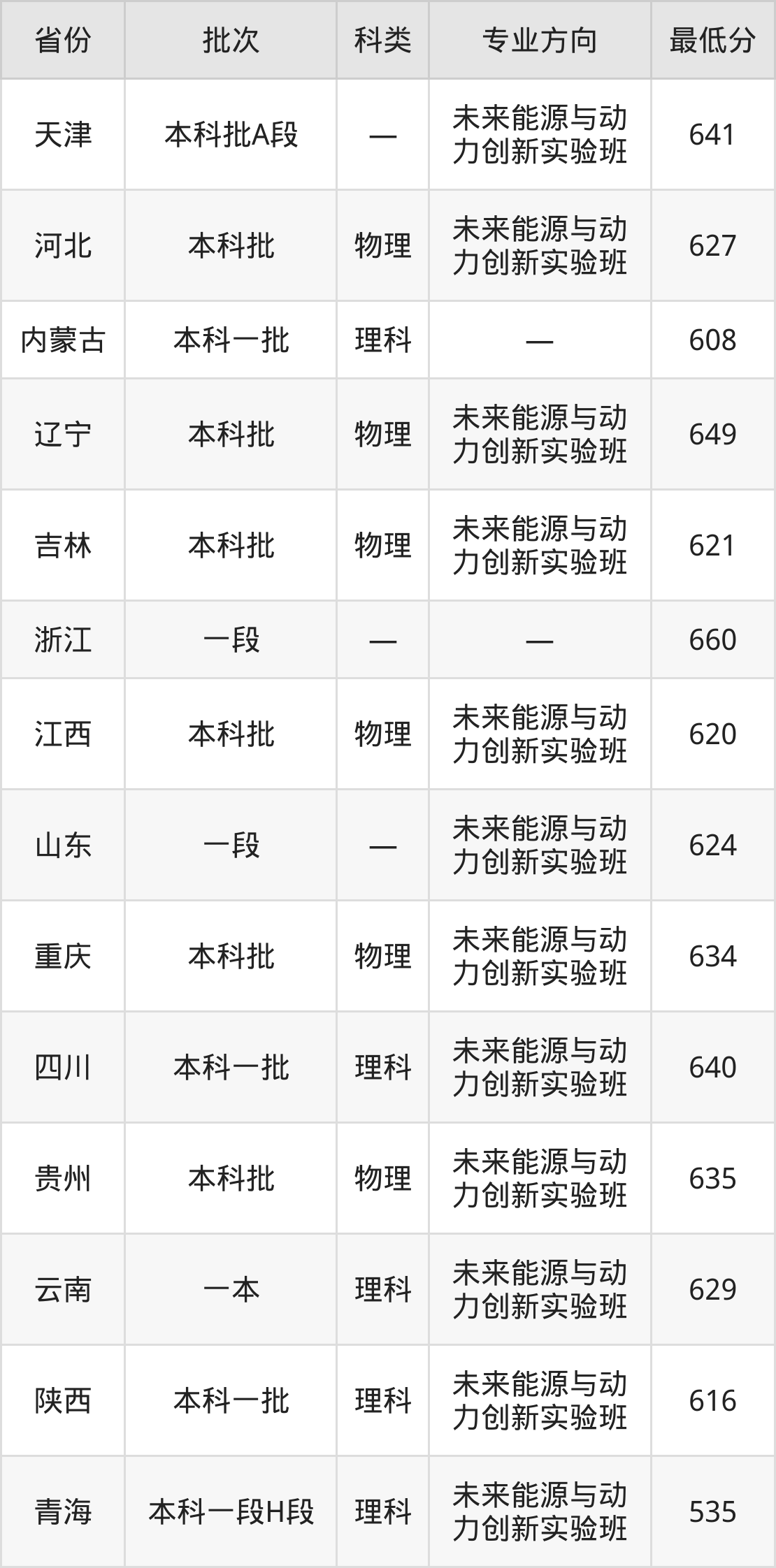 湖南大学能源与动力工程专业录取分数线从535分到660分不等,在部分地区的最低分数线如下: