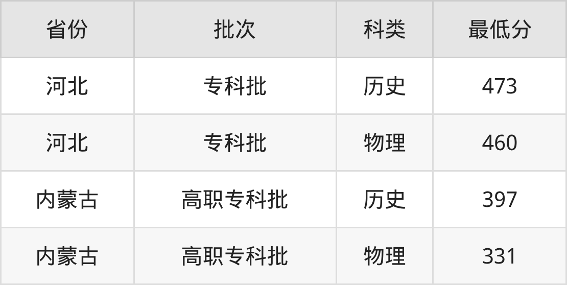 陕西青年职业学院大数据与会计专业录取分数线从331分到473分不等,最低分数线如下: