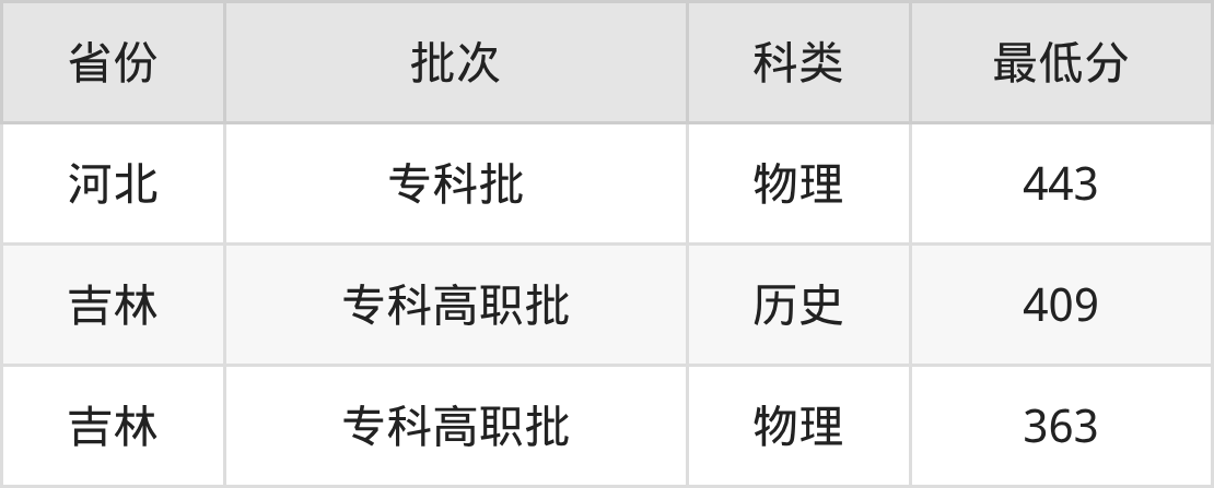 长春职业技术大学数字媒体技术专业在全国各省最低录取分数线为363分(吉林物理类),除此之外,在其余地区的最低分为河北物理类443分,以上数据均为2025年数据,供2026年高考生参考。