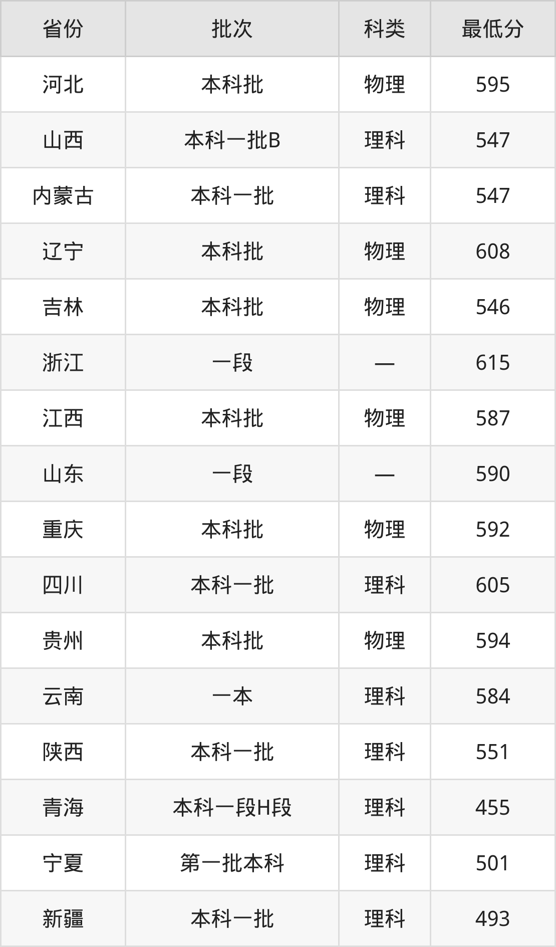 长沙理工大学电子信息科学与技术专业录取分数线从455分到615分不等,在部分地区的最低分数线如下: