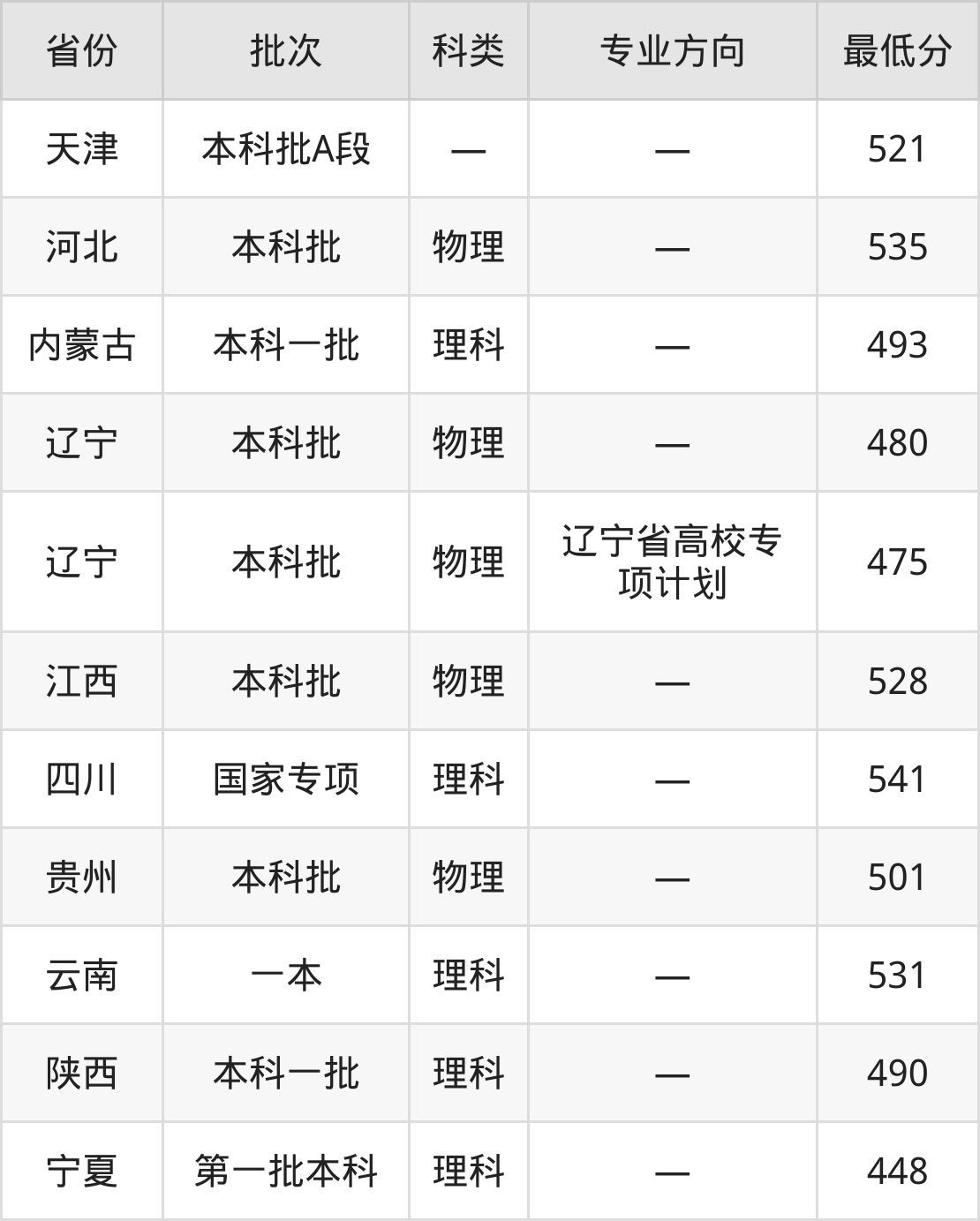 辽宁工程技术大学测绘工程专业录取分数线从448分到541分不等,最低分数线如下: