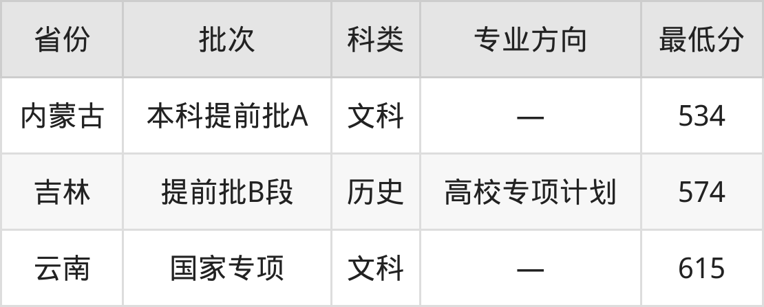 对外经济贸易大学中国语言文学类专业录取分数线从534分到615分不等,最低分数线如下: