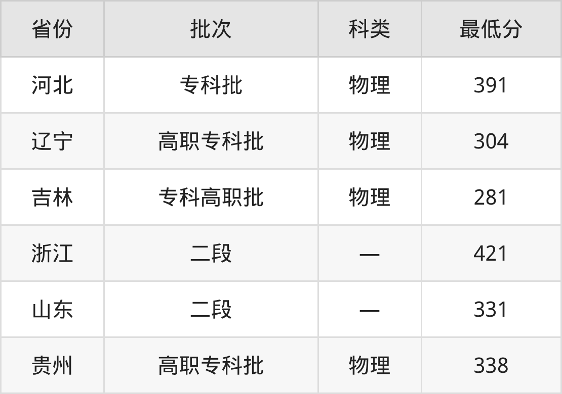广西物流职业技术学院智能物流技术专业在全国各省最低录取分数线为281分(吉林物理类),除此之外,在其余地区的最低分为山东331分、贵州物理类338分、河北物理类391分、辽宁物理类304分等,以上数据均为2025年数据,供2026年高考生参考。