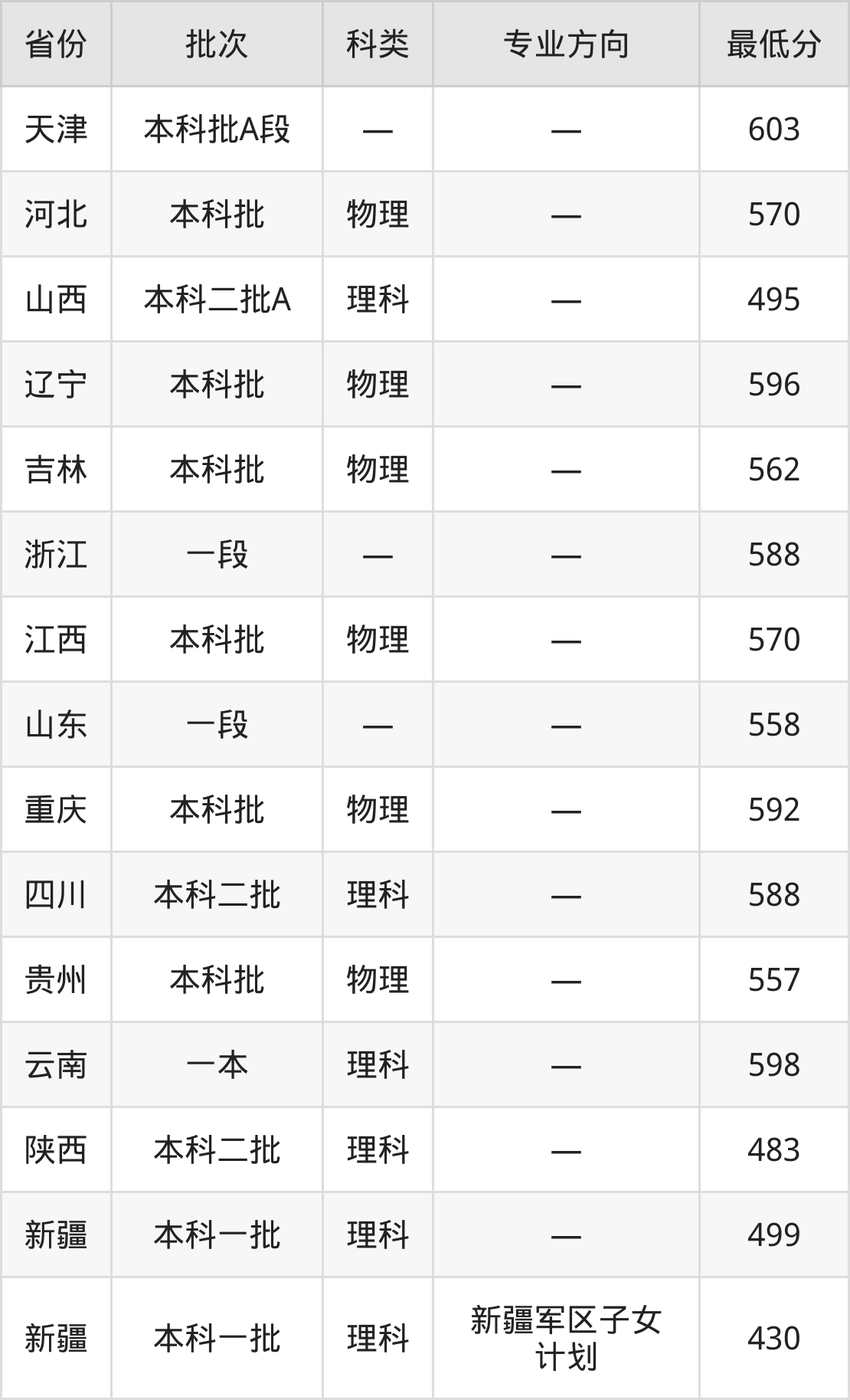 新疆医科大学口腔医学专业录取分数线从430分到603分不等,在部分地区的最低分数线如下:
