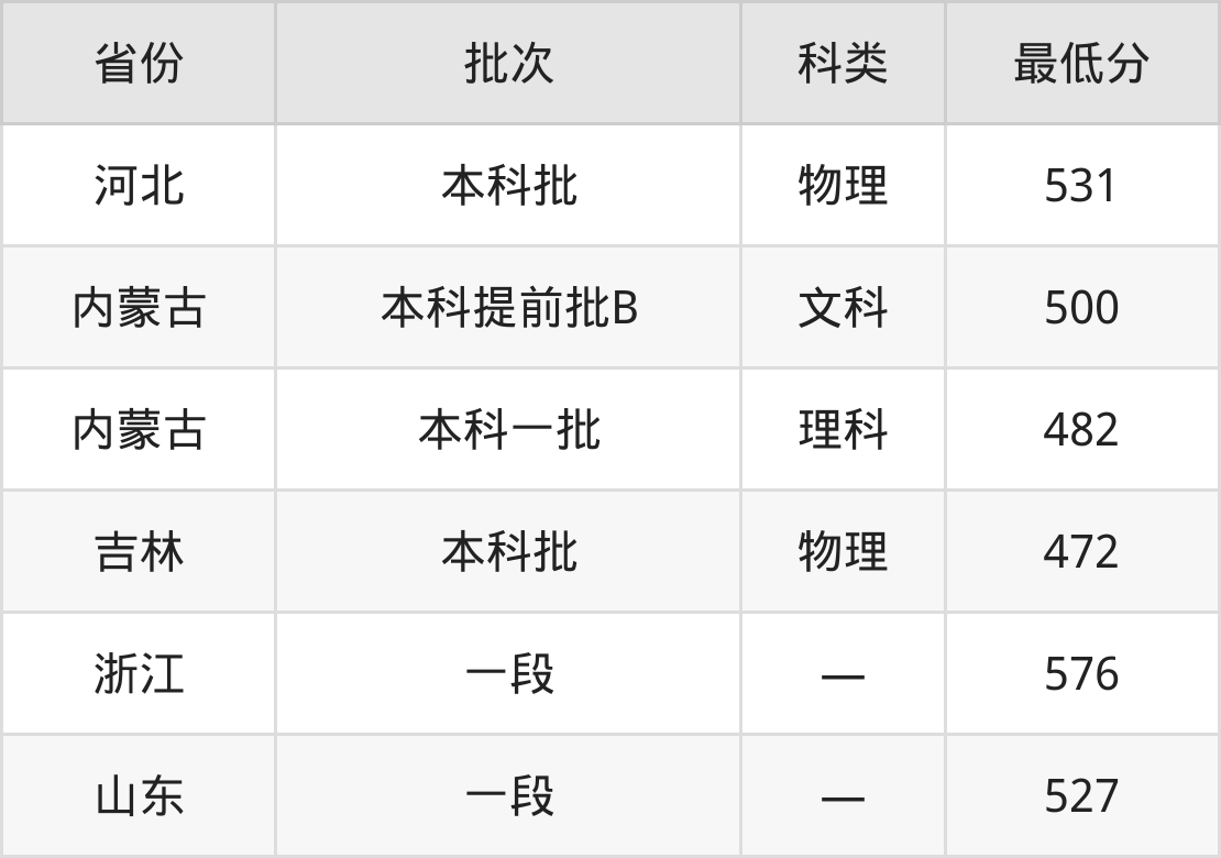 内蒙古民族大学财务管理专业在全国各省最低录取分数线为472分(吉林物理类),除此之外,在其余地区的最低分为河北物理类531分、内蒙古理科482分、浙江576分、山东527分,以上数据均为2024年数据,供2025年高考生参考。