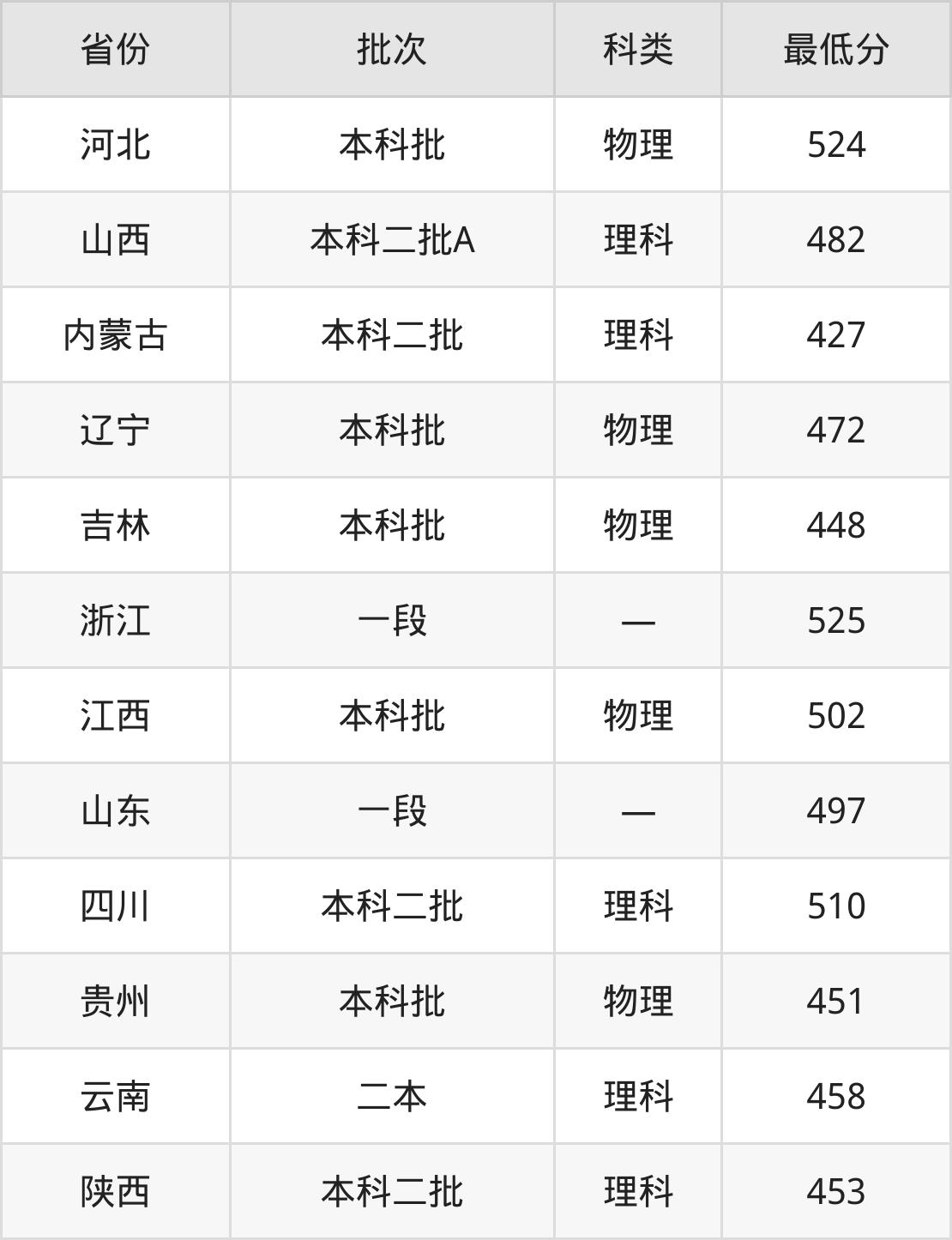 内蒙古:理科最低427分