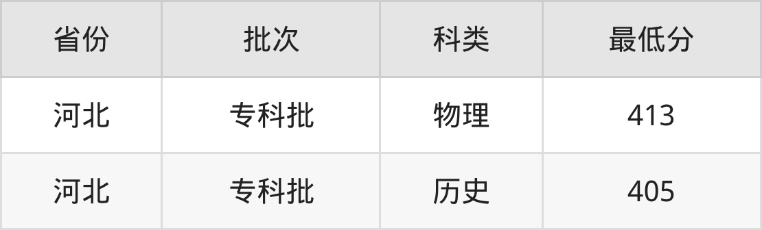 广西建设职业技术学院工程造价专业录取分数线从405分到413分不等,最低分数线如下: