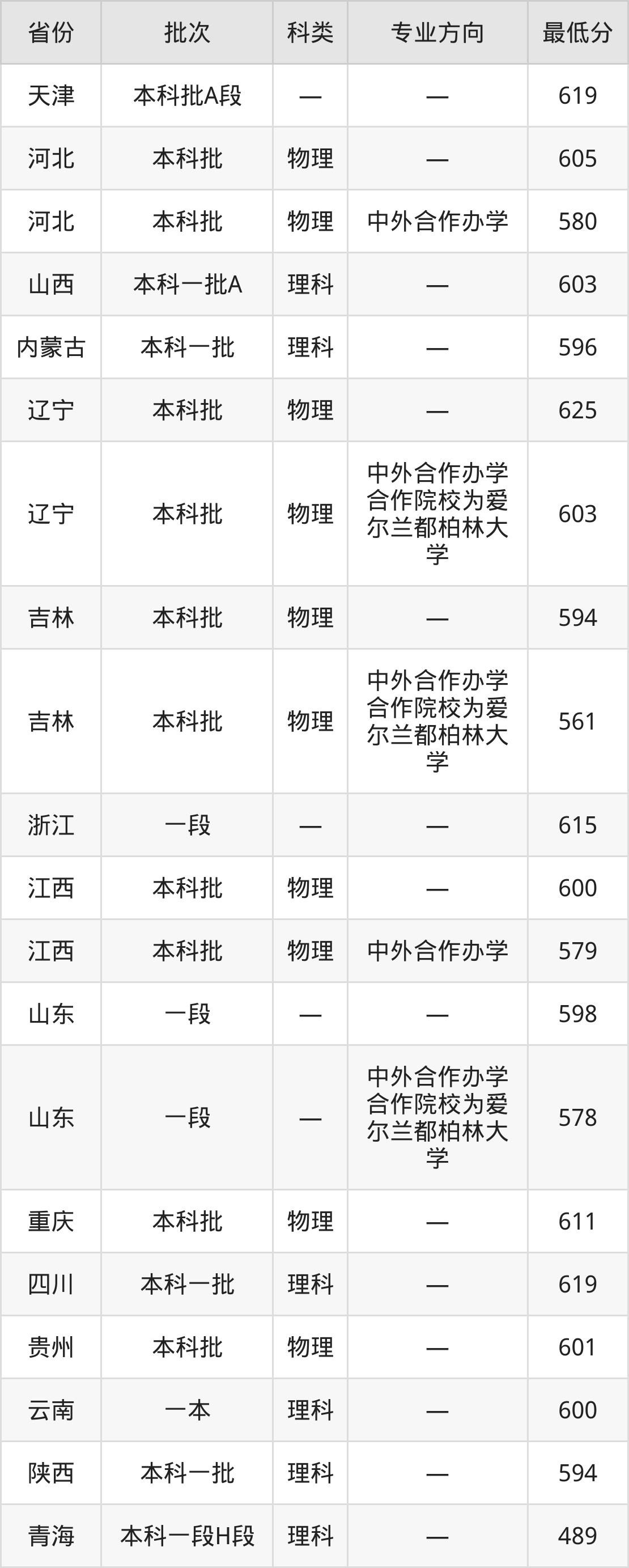 长安大学车辆工程专业录取分数线从489分到637分不等,在部分地区的最低分数线如下: