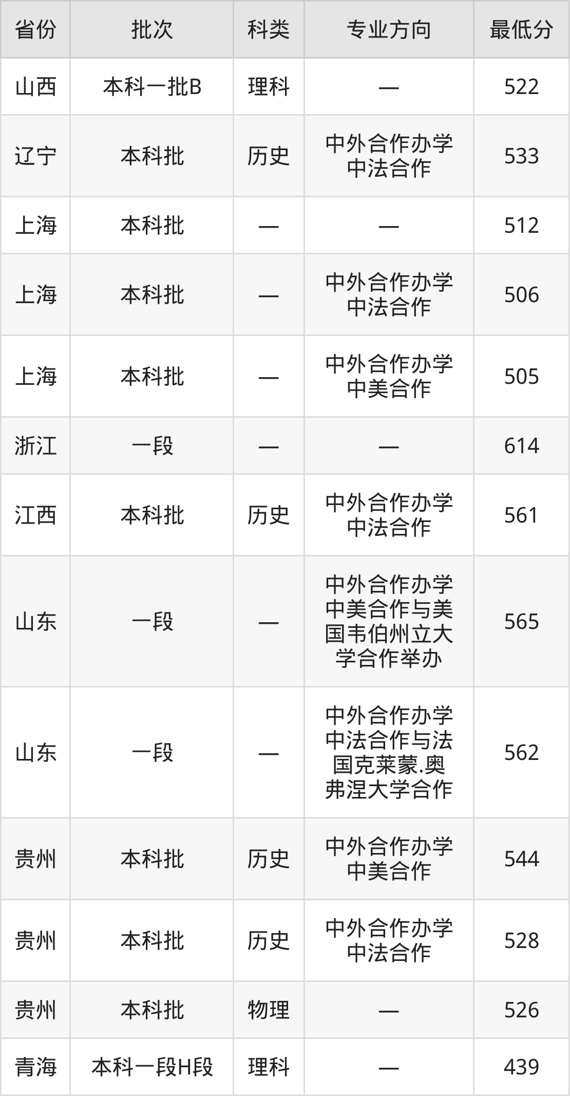 山西:理科最低522分