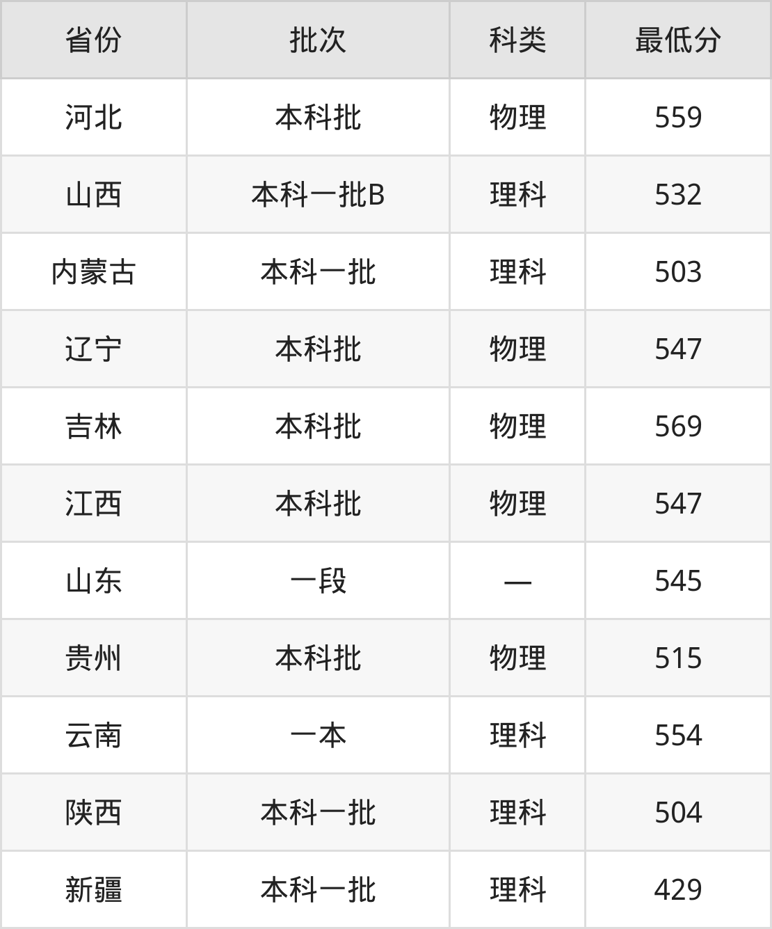 内蒙古:理科最低503分