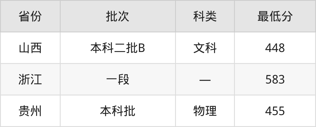 闽南师范大学国际商务专业录取分数线从448分到583分不等,最低分数线如下: