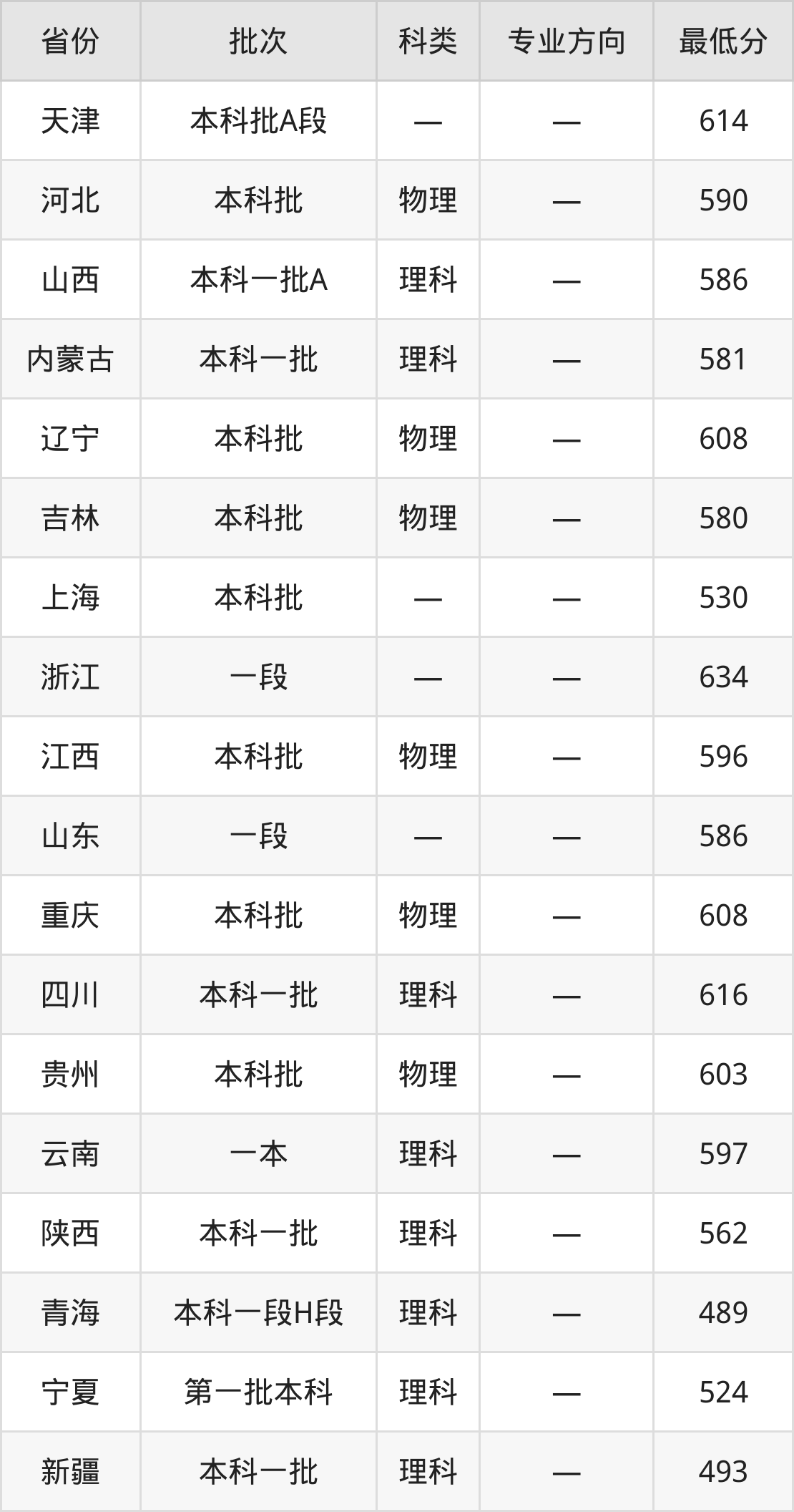 西北农林科技大学动物医学类专业录取分数线从489分到634分不等,在部分地区的最低分数线如下: