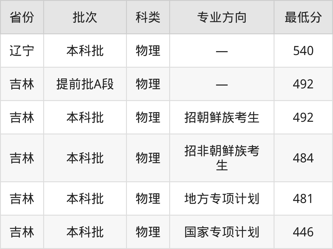 延边大学动物科学专业录取分数线从446分到540分不等,最低分数线如下: