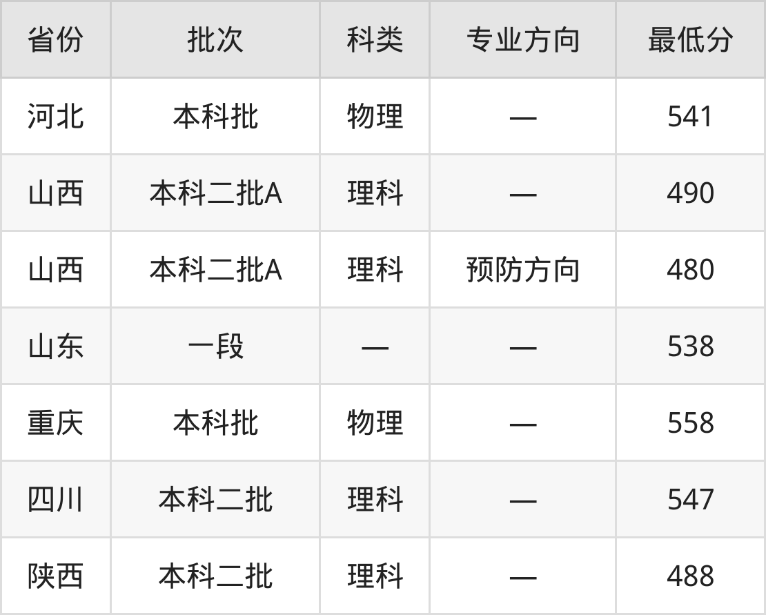 西藏民族大学临床医学专业在全国各省最低录取分数线为480分(山西理科),除此之外,在其余地区的最低分为河北物理类541分、山东538分、重庆物理类558分、四川理科547分等,以上数据均为2024年数据,供2025年高考生参考。