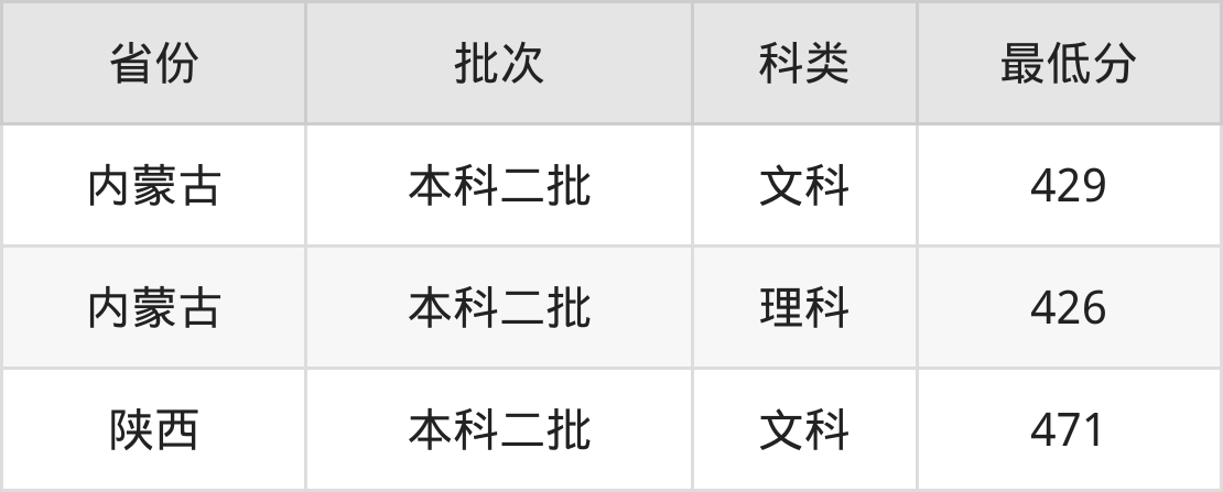 内蒙古财经大学劳动与社会保障专业录取分数线从426分到471分不等,最低分数线如下:
