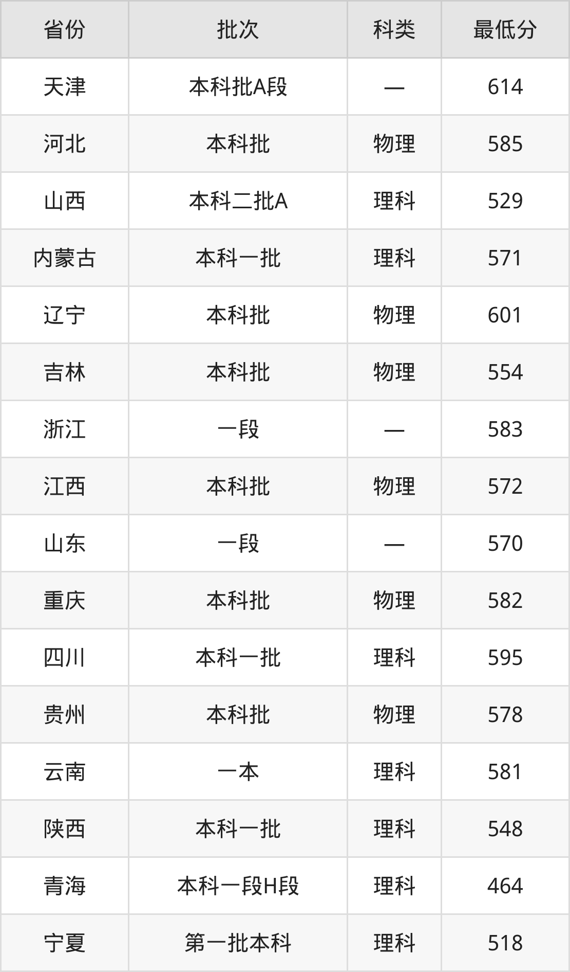 浙江:最低583分
