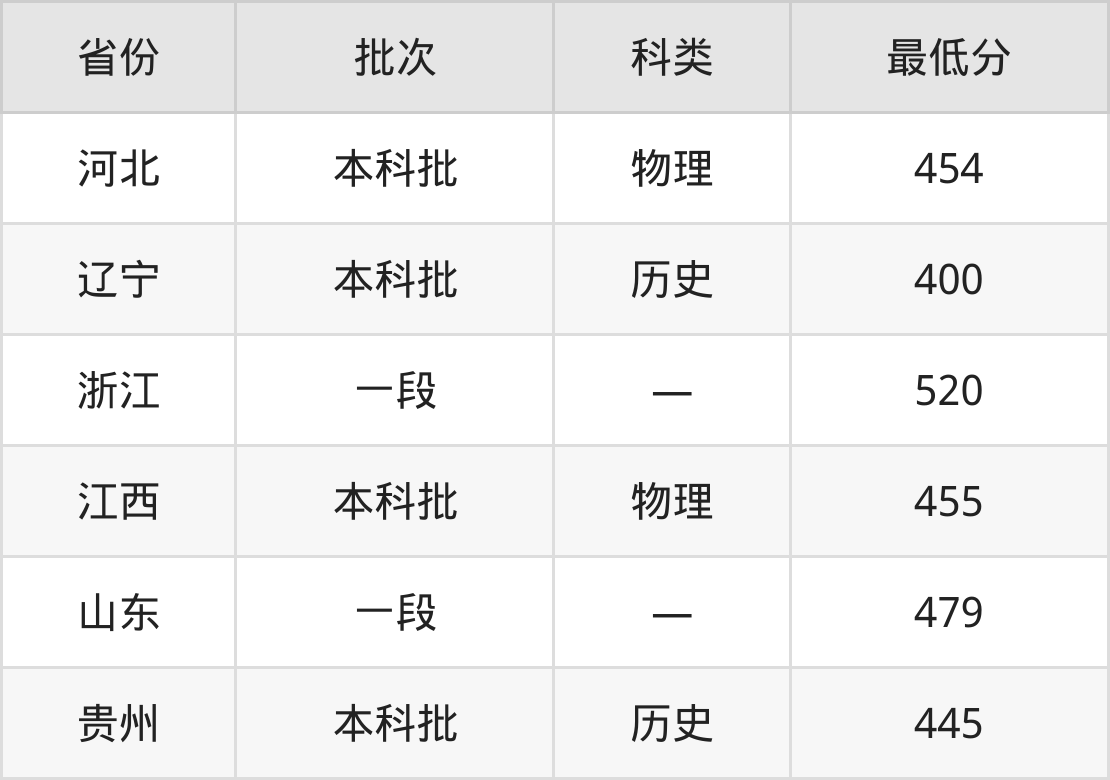广西外国语学院西班牙语专业在全国各省最低录取分数线为400分(辽宁历史类),除此之外,在其余地区的最低分为河北物理类454分、浙江520分、江西物理类455分、山东479分等,以上数据均为2024年数据,供2025年高考生参考。