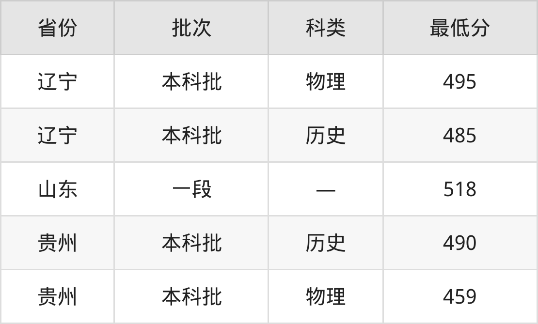 辽宁中医药大学公共事业管理专业在全国各省最低录取分数线为459分(贵州物理类),除此之外,在其余地区的最低分为辽宁历史类485分、山东518分,以上数据均为2024年数据,供2025年高考生参考。
