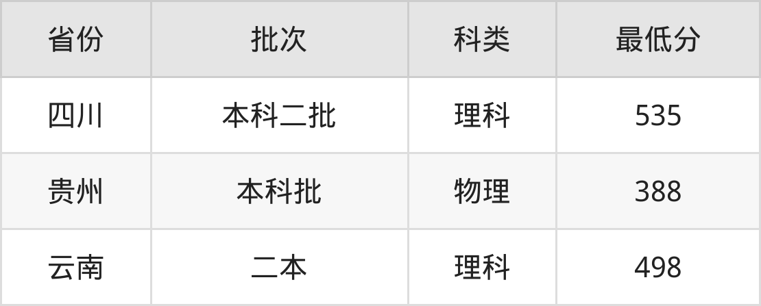 金陵科技学院城市地下空间工程专业在全国各省最低录取分数线为388分(贵州物理类),除此之外,在其余地区的最低分为云南理科498分、四川理科535分,以上数据均为2024年数据,供2025年高考生参考。