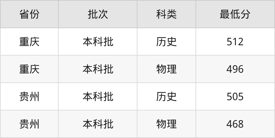 亳州学院物流管理专业在全国各省最低录取分数线为468分(贵州物理类),除此之外,在其余地区的最低分为重庆物理类496分,以上数据均为2025年数据,供2026年高考生参考。