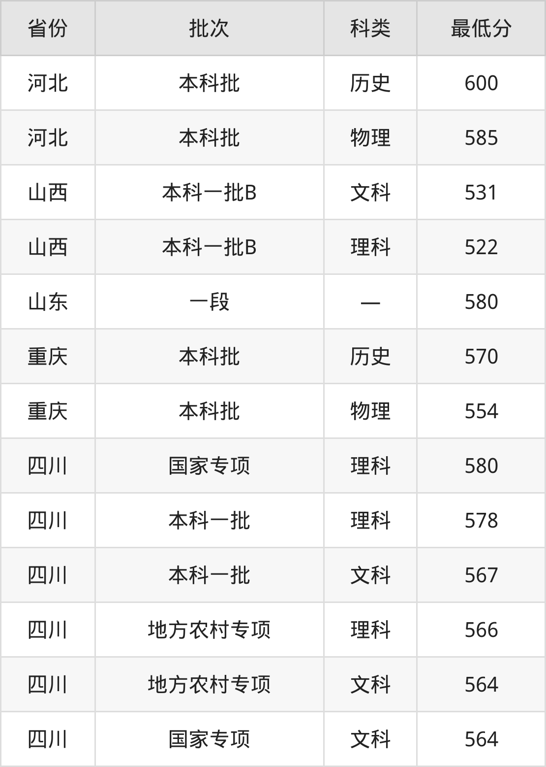 四川:理科最低566分、文科最低564分