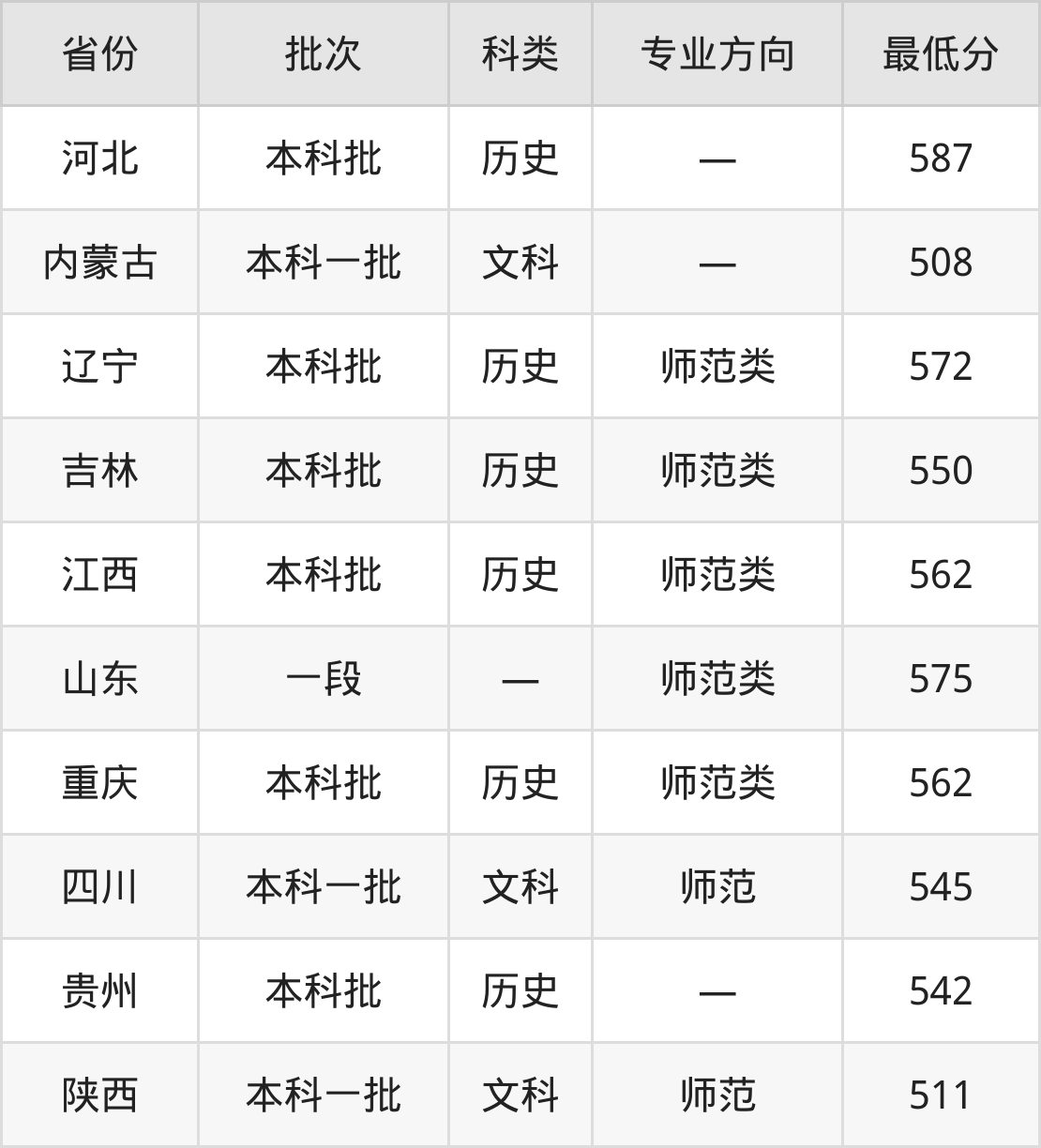 河北师范大学历史学专业录取分数线从508分到587分不等,最低分数线如下: