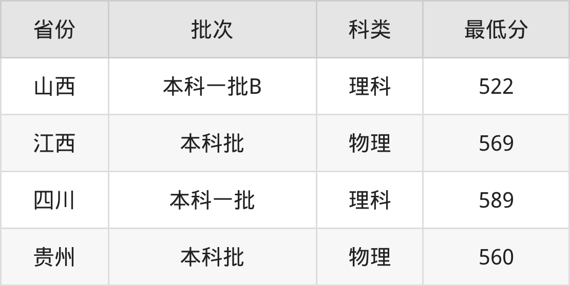 湖北工业大学大数据管理与应用专业在全国各省最低录取分数线为522分(山西理科),除此之外,在其余地区的最低分为江西物理类569分、四川理科589分、贵州物理类560分,以上数据均为2024年数据,供2025年高考生参考。