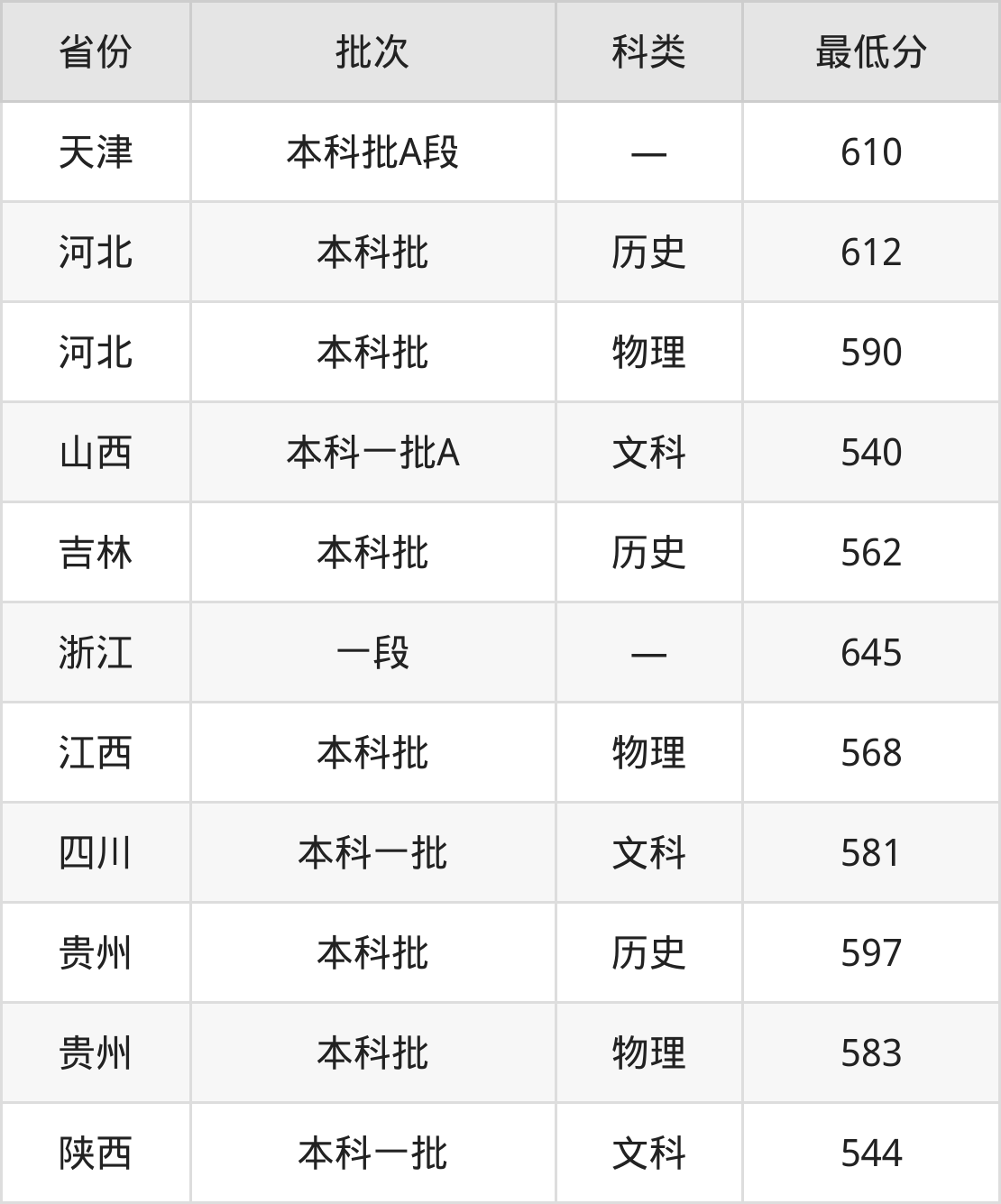 贵州大学汉语言文学专业在全国各省最低录取分数线为540分(山西文科),除此之外,在其余地区的最低分为天津610分、河北物理类590分、吉林历史类562分、浙江645分等,以上数据均为2024年数据,供2025年高考生参考。