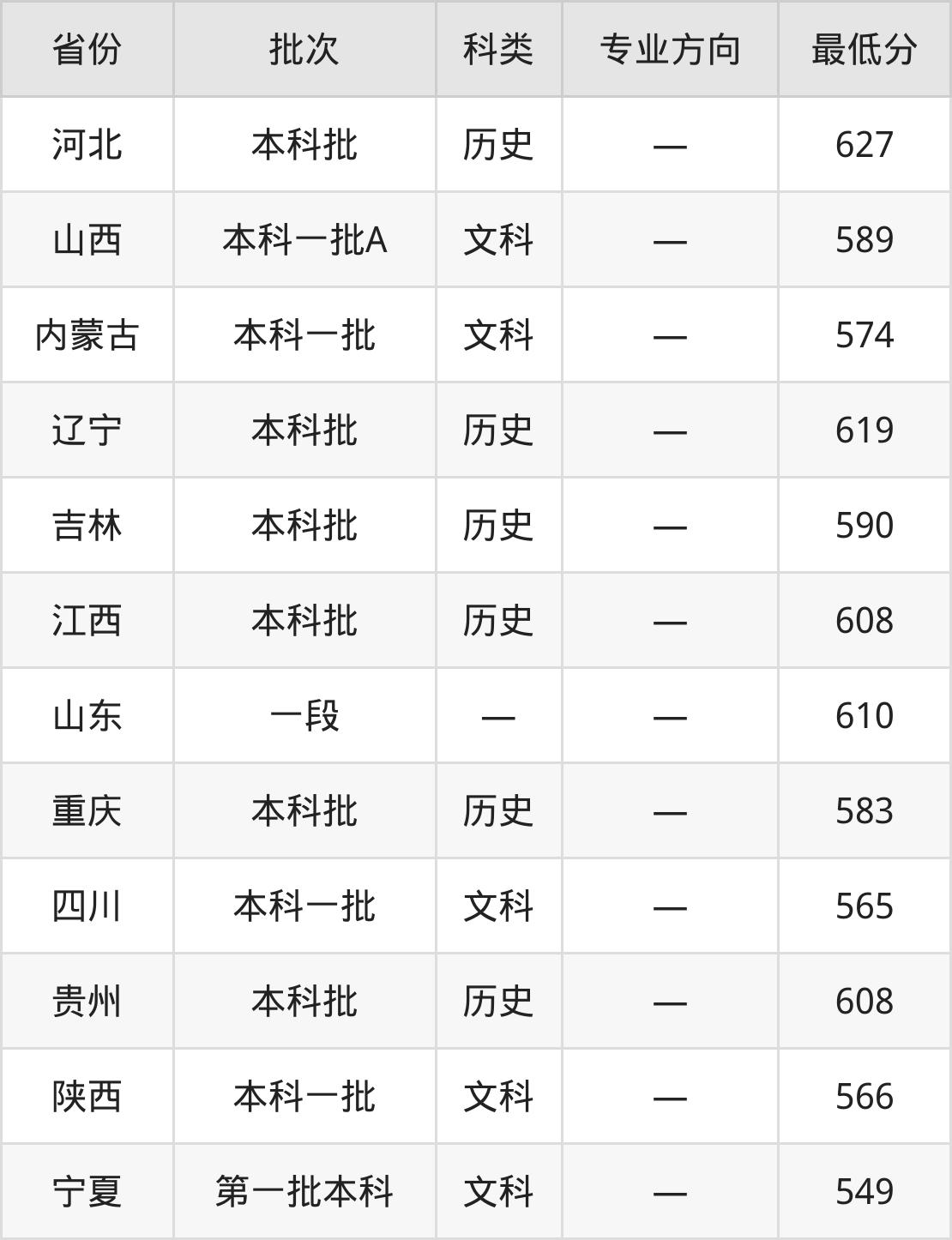 吉林大学社会学类专业在全国各省录取分数线: