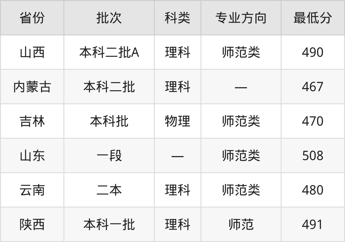 延安大学化学专业在全国各省最低录取分数线为467分(内蒙古理科),除此之外,在其余地区的最低分为吉林物理类470分、山东508分、云南理科480分、陕西理科491分等,以上数据均为2024年数据,供2025年高考生参考。